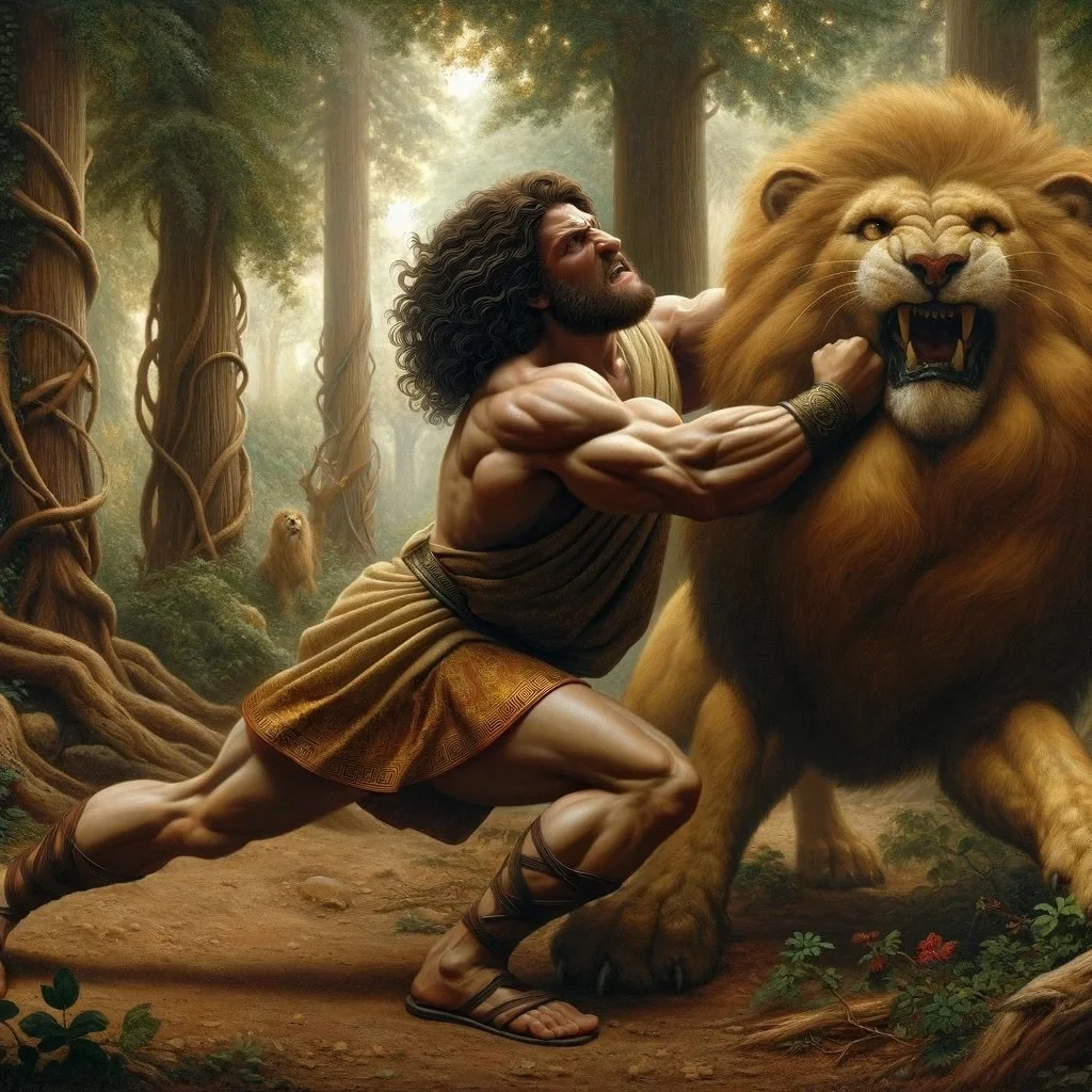 Like Hercules conquering the lion, a brave child battles challenges with unyielding strength and resilience, proving that true courage lies within.